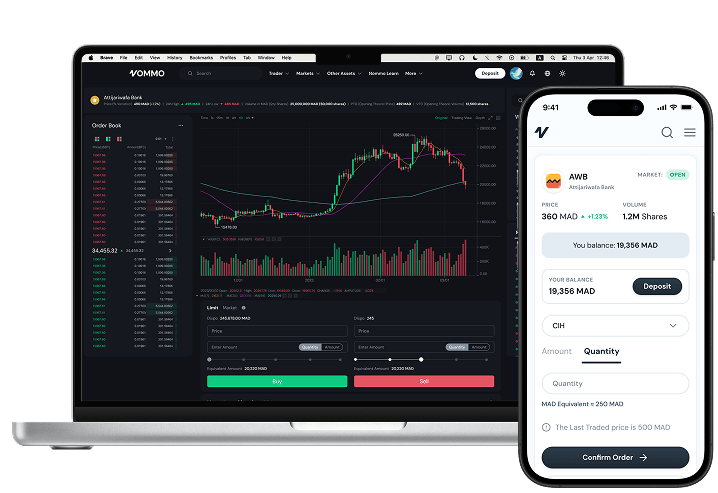 Nommo est une plateforme digitale où vous passez vos ordres, tandis qu’une société de bourse partenaire agréée par l’AMMC assure leur exécution et la gestion de vos comptes.